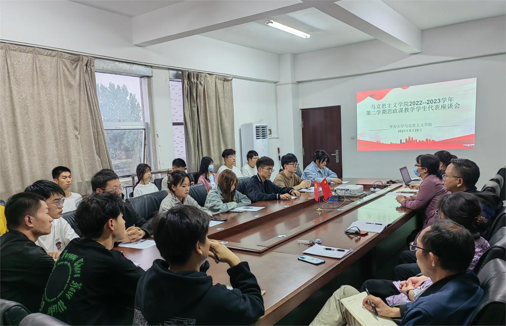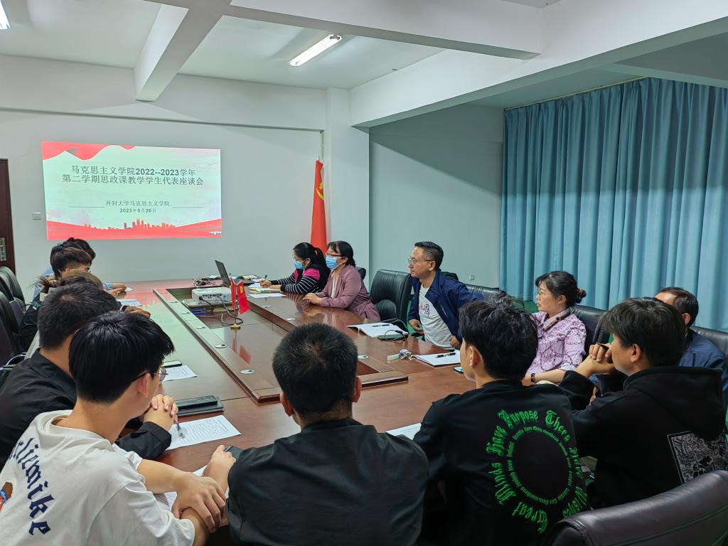 为进一步提高思政课教学质量,我院于5月26日下午3点在二号楼418会议室召开了思政课教学学生代表座谈会。马克思主义学院院长常素芳、副院长左慧琴、教科办主任、各教研室主任及21级、22级学生代表参加了座谈会。座谈会由副院长左慧琴主持。