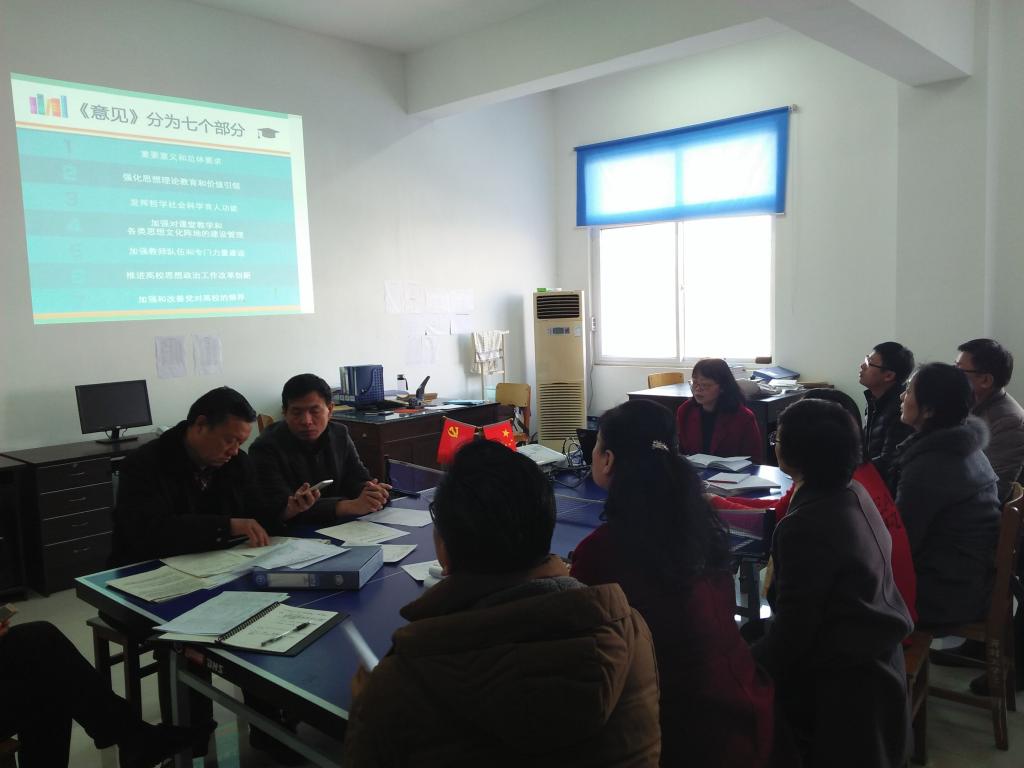 思政部全体教师把加强学习作为一种政治责任和一种精神追求,把理论学习作为提高政治素养和政治水平的重要途径来认识、来对待。学习是一种生活,更是一门艺术,在学习前的准备、学习中的互动、学习后的反思等各个环节中都充分发挥思政部全体教师的理论优势,同时注重调动和维持全体人员的积极性和创造性。在深刻理解党的最新理论成果的新思想、新观点、新论断,然后全面掌握科学理论的立场、观点、方法,最终将理论成果转化成工作的指南针、催化剂。