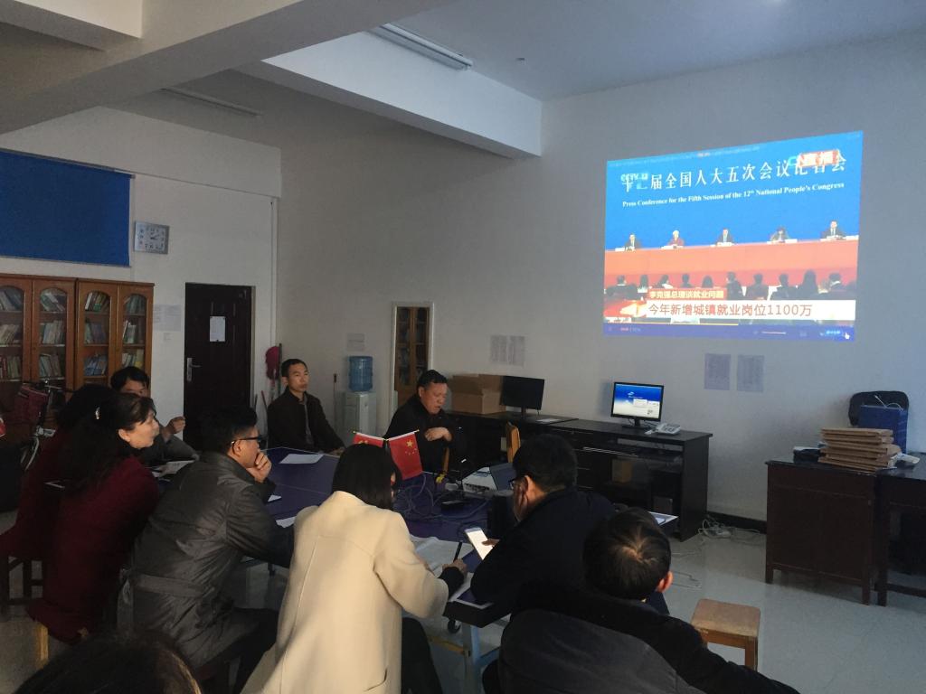 常素芳主任首先带领大家学习了“两会”的主要内容和热点议题,并就《2017政府工作报告》做了重点解读,随后,全体教师一起观看了李克强总理答记者问的现场录像。观看结束,大家针对今年“两会”中涉及的“思想政治”“实体经济”“创新创业”“环境治理”等热点内容展开了热烈的讨论,各位老师分别阐述自己对这些热点问题的解读,并根据我校学生实际情况就如何将“两会”精神深入课堂教学进行了研讨。