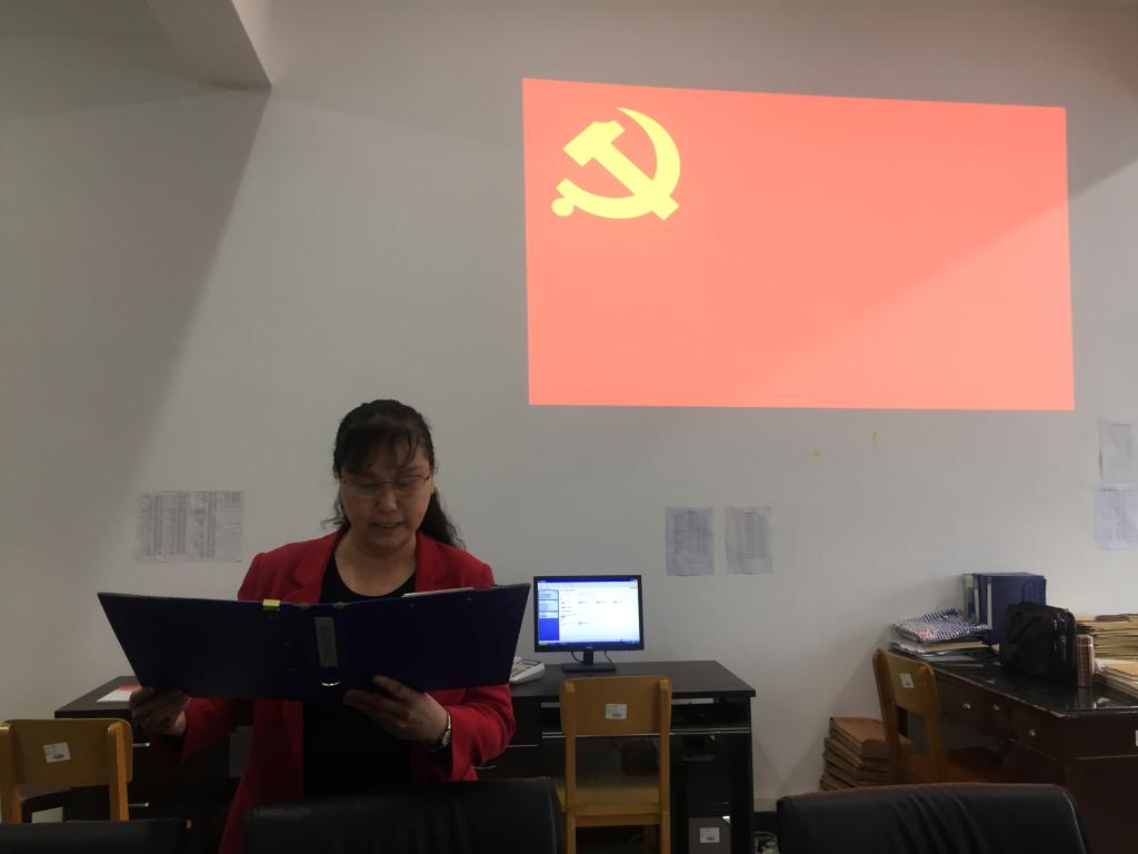 教学总支部三支部的全体党员在陈友东老师的带领下重温了入党誓词,再次向党旗庄严宣誓。随后,李明教授诵读了《共产党宣言》的经典段落,获得了全体党员的一致好评。