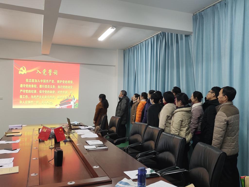 首先,全体党员面向党旗,由领誓人常素芳书记带领大家进行宣誓。接着,诵读经典。由冯魁老师领学《习近平新时代中国特色社会主义思想三十讲》第十讲。党员教师交纳党费。3月份过政治生日的刘慧辛老师对照党章要求,结合自身工作谈感受、话贡献、找差距、明方向、定措施,其他党员向刘慧辛老师提出希望和建议。最后对本月党员积分的相关内容进行了解读。