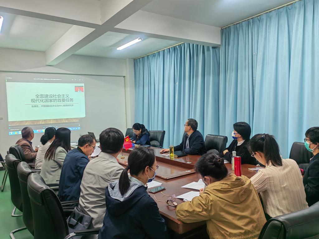 首先,郝书记带领党员教师研学党的二十大报告,并学习了习近平总书记在党的二十届一中全会上的重要讲话精神。接着,组织大家观看了由中国国际经济交流中心首席研究院张燕生教授主讲的《全面建设社会主义现代化国家的首要任务》和中央党校国际战略研究院罗建波教授主讲的《推进国家安全体系和能力现代化,坚决维护国家安全和稳定》,使大家更加全面准确深刻地领会了党的二十大精神。最后,全体教师就党的二十大精神进行了深入地交流研讨,大家各抒己见,分别谈了自己的感悟。