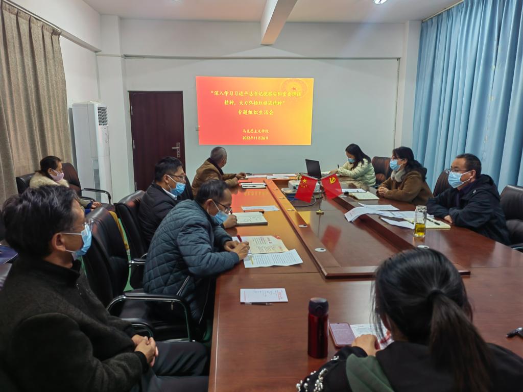 11月26日下午,马克思主义学院组织全体党员教师在2号楼418开展“深入学习习近平总书记视察安阳重要讲话精神 大力弘扬红旗渠精神”专题组织生活会。会议由院党总支书记郝喜才主持。