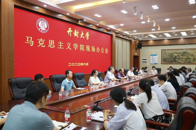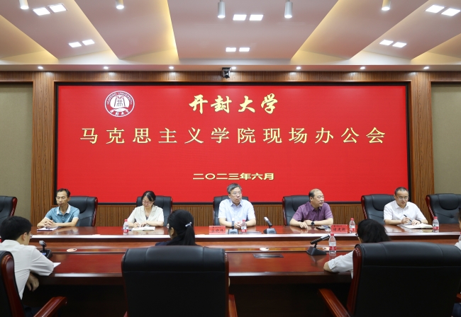 宋晓炜充分肯定了马克思主义学院的各项工作,全面分析了马克思主义学院下一阶段所面临的机遇和挑战,并对加快推进马克思主义学院建设提出了希望和具体要求。他指出,马克思主义学院要聚焦思政课立德树人根本任务,充分发挥马克思主义学院思想引领作用;要结合开封实际、学校实际、学生实际,将开封红色资源与思政课教学相融合,进一步凝练特色,推动我校思政课高质量发展;要积极主动与社会各界联系交流,进一步挖掘思政课教学实践基地,打造具有开大特色的马克思主义实践教育品牌,为增强思政课实践育人效果提供有力保障。