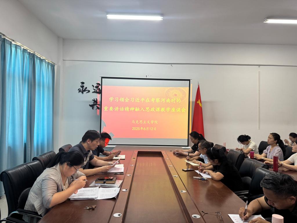 6月12日下午,马克思主义学院举办习近平总书记在河南考察时的重要讲话精神融入思政课教学座谈会,会议由马克思主义学院党总支书记李鹏主持,全体思政课教师参加,卢雪、方继玲、陈伟杰、宋洪杰、王琳琳等老师先后作了交流发言。此次座谈会旨在提升思政教育的实效性与针对性,让习近平总书记的重要讲话精神在思政课堂落地生根,进一步推动思政课教学改革创新。