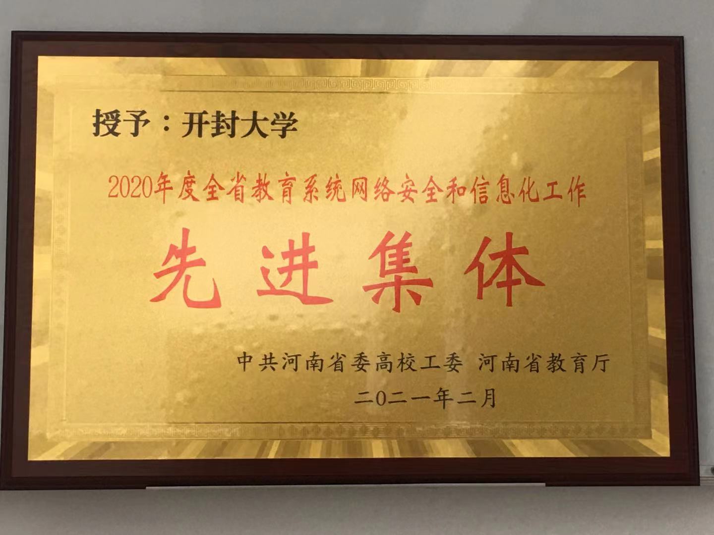 近日,中共河南省委高校工委 河南省教育厅下发《中共河南省委高校工委 河南省教育厅关于表彰2020年度全省教育系统网络安全和信息化工作先进集体先进个人的决定》(教科技〔2021〕57号),对2020年度全省教育系统网络安全和信息化工作先进集体先进个人进行表彰。我校荣获“先进集体”荣誉称号。
