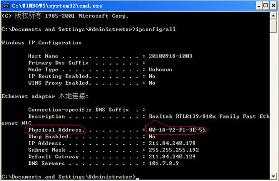 7.将查询到的物理地址修改最后一位后填入第三步的网络地址的值中: