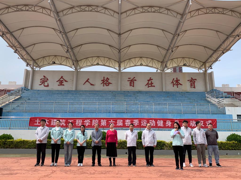 为深入贯彻落实习近平总书记关于体育工作的重要论述和指示批示精神,推动健身运动蓬勃发展,倡导积极健康的生活方式,4月11日中午,土木建筑工程学院第六届春季运动健身月启动仪式在bat365在线官方网站体育场举行。学院党政领导班子出席,全体师生参加,活动由团总支书记赵文婷主持。