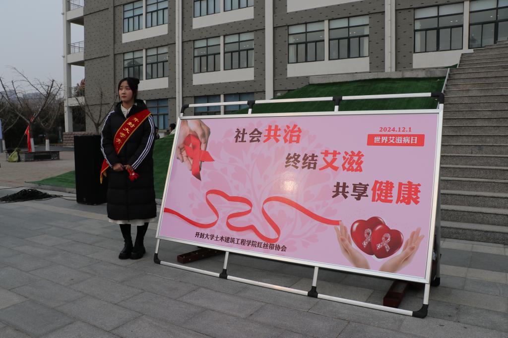 活动伊始,土木建筑工程学院党总支书记李军致辞,他号召青年大学生要认真学习防艾抗艾知识,充分认识艾滋病的危害,共同营造预防艾滋病,关爱艾滋病感染者,消除歧视的和谐氛围。稍后,孙龙主任讲话,他强调要宣传“每个人是自己健康第一责任人”理念,切实扛起防艾责任,为开封市艾滋病防治工作贡献力量。接着,学生代表、红丝带协会会员袁家豪发言,呼吁同学们养成文明健康的生活方式,提高对艾滋病的防护意识和预防能力,积极参与“青春红丝带”的志愿活动,增强社会责任意识。最后,成芳宣布bat365在线官方网站2024年“世界艾滋病日”宣传活动启动。