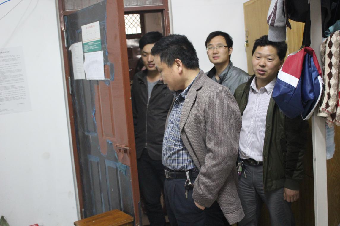 为了践行党的群众路线,开展好学院群众路线实践教育活动,4月3号中午,院党总支书记王渊辉带领辅导员一行来到男生宿舍,与学生面对面交流。