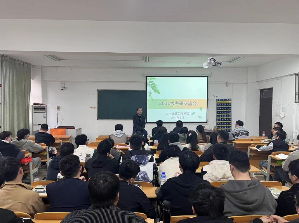 为动员2025届土木工程专业学生考研积极性,进一步提升考研成功率,促进学院学科高质量发展。3月18日下午,土木建筑工程学院在3号楼202教室召开2025届本科生考研动员大会。学院副院长赵书锋、土木工程专业教研室主任师杰、5名往届优秀学生代表及2025届土木工程专业55名学生参加,会议由辅导员王巍智主持。