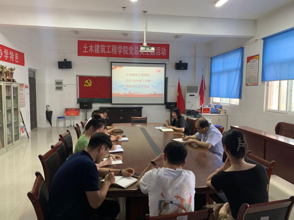 7月2日下午,土木建筑工程学院在8#楼503召开期末学生工作会议。副院长李军出席,全体学工队伍参加。会议由团总支书记赵文婷主持。