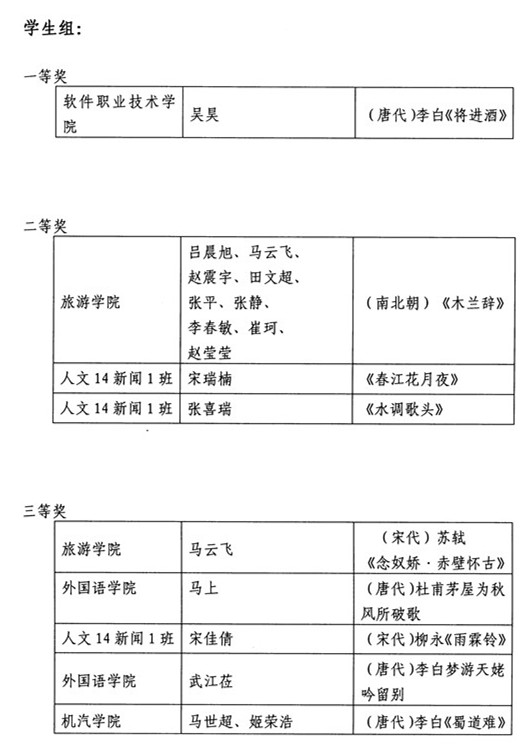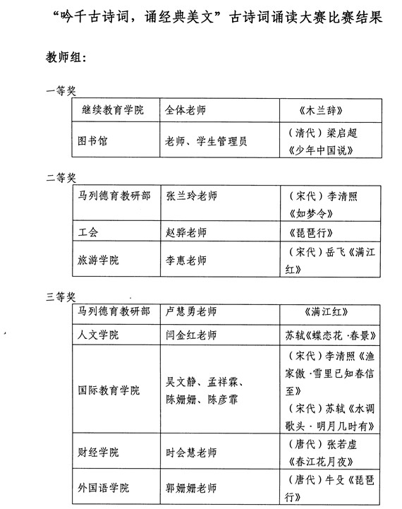 “吟千古诗词,诵经典美文”古诗词诵读大赛比赛结果