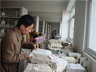 为配合化工学院和土木建筑工程学院的搬迁,图书馆从本学期伊始就开始了紧张的准备工作,在领导的统筹安排下,各库室积极配合,对需搬迁的32000册图书分类、调配、打包,对需搬迁的物品核对、归拢。12月9日—10日仅用了1天半的时间就完成了所有书籍和物品的搬迁整理。搬迁时,每一个人都对自己分工的工作尽心尽职。大家都热情高涨、争先恐后。最终使搬迁工作顺利、圆满的完成。