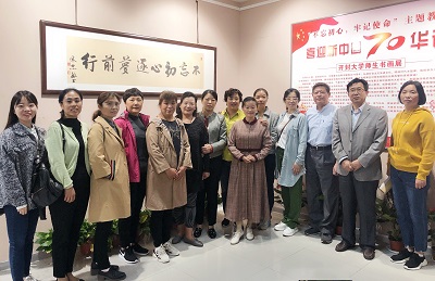 10月10日上午,图书馆组织全体馆员参观了我校举办的“不忘初心、牢记使命”主题教育——喜迎新中国70华诞书画展。