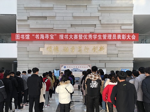 12月5日下午,图书馆2019年度“书海寻宝”搜书大赛暨优秀学生图书管理员表彰活动在图书馆二楼大厅举行。活动由图书馆馆长孙伟主持。