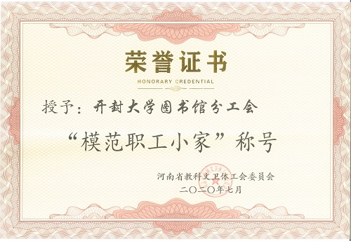 图书馆分工会2020年被河南省教科文卫体工会委员会授予“模范职工小家”荣誉称号。