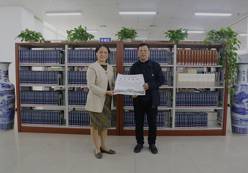 4月14日,河南省地方史志办公室向我校捐赠了《河南历代方志集成》《河南省志》《传承》《河南历代诗人咏河南》等系列文献。我校党委书记陈灿、党委委员工会主席成芳、党委委员副校长谢文忠代表学校接受捐赠,陈书记向河南省地方史志办公室党组书记、主任管仁富颁发了赠书感谢状。