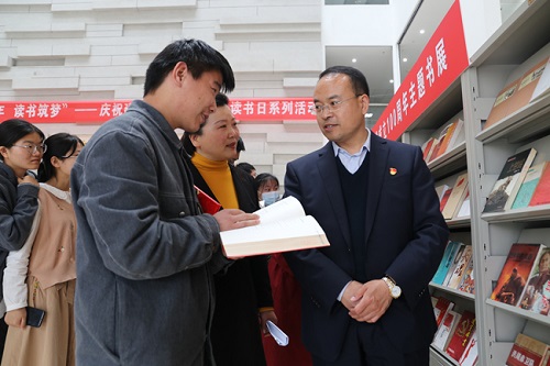 在庆祝建党100周年和第26个“世界读书日”到来之际,为使广大师生感悟党的百年历史,提升学史明理、学史增信、学史崇德、学史力行的能力,切实做到学党史、悟思想、办实事、开新局,4月22日下午,由我校党委宣传部、图书馆和思想政治理论教研部联合主办的“致敬百年 读书筑梦”2021年阅读推广启动仪式在图书馆二楼大厅顺利举行。校党委委员、卫校校长谢文忠出席仪式,党委宣传部、图书馆和思想政治理论教研部负责人和相关工作人员,外国语学院党总支书记和信息工程学院、医学部辅导员及200余名学生参加了仪式,仪式由图书馆党支部书记、副馆长孙浦辰主持。