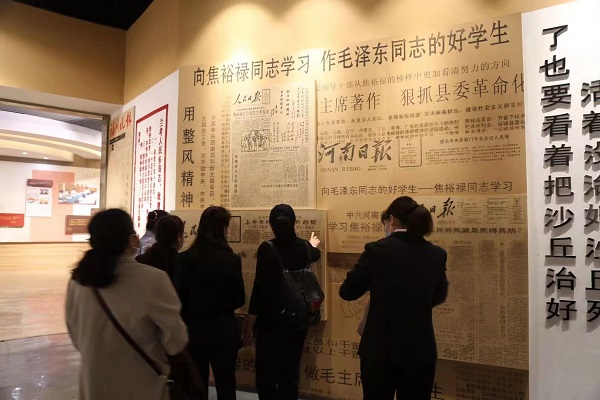 在焦裕禄烈士纪念馆,大家认真聆听讲解员的讲解,不时驻足观看,深刻体悟“亲民爱民、艰苦奋斗、科学求实、迎难而上、无私奉献”的焦裕禄精神,重温焦裕禄同志带领群众改变兰考面貌的峥嵘岁月。一张张旧照片,一个个老物件,再现了焦裕禄同志带领群众同自然灾害作斗争努力发展经济的动人场面,真实反映了焦裕禄同志艰苦奋斗、勤政为民的感人事迹。