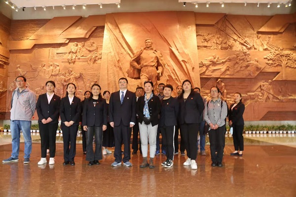 在中国共产党成立100周年之际,为全面贯彻落实习近平总书记在党史学习教育动员大会上的重要讲话精神,高标准高质量推动党史学习教育扎实开展。2021年5月20日图书馆党支部组织党员、职工来到兰考焦裕禄烈士陵园开展以“学党史祭英烈”为主题的党史学习教育。