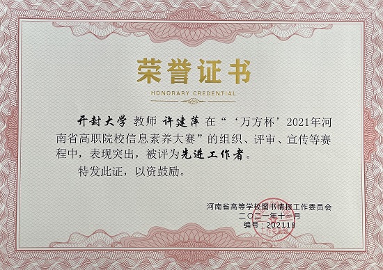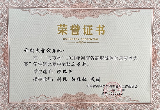 我校图书馆联合信息工程学院组织学生参加的“万方杯”2021年河南省高职院校信息素养大赛喜获佳绩。