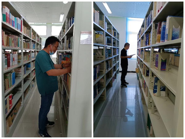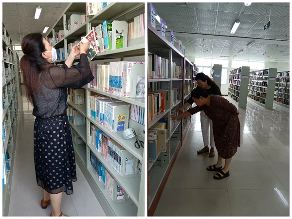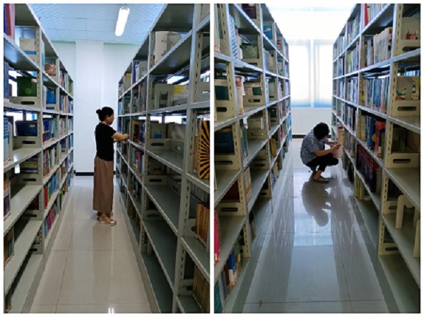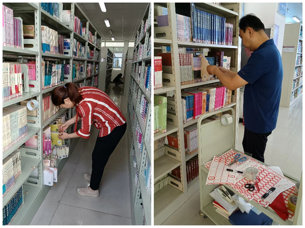 近日,图书馆利用学生离校后的这段时间,加班加点抓紧时间整理架标、修补书刊,为下学期更好的服务读者做好充分的准备工作。