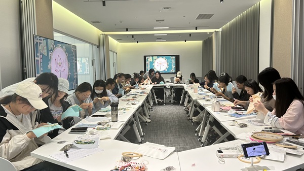 本次活动邀请了艺术设计学院庞未名老师担任主讲嘉宾,来自各院系的30余名师生共同参与了这场别开生面的非遗文化体验活动。活动现场气氛热烈,师生们穿针引线,将传统纹样与端午元素巧妙结合,在体验传统技艺的同时,也深刻感受到了中华优秀传统文化的博大精深。