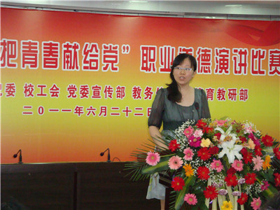 为庆祝中国共产党建党90周年,6月22日,“我把青春献给党“职业道德演讲比赛在bat365在线官方网站行政楼二楼会议厅举行,图书馆的孟颖、张文静两位老师用自己真挚的感情,生动的语言打动了在座的各位评委和老师,分别获得了一等奖和三等奖的好成绩。同时,借此演讲比赛的机会,让全校师生对图书馆的工作有了更加全面的了解,也彰显出了图书馆老师默默无闻的奉献精神。