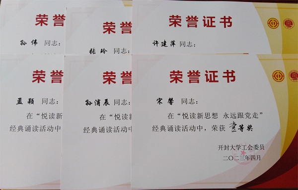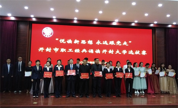 4月28日上午,图书馆分工会代表队参加校工会在行政楼第一会议厅举办“悦读新思想 永远跟党走”开封市职工经典诵读活动bat365在线官方网站选拔赛。孙伟、孙浦辰、许建萍、孟颖、张玲、宋馨等六人代表图书馆分工会参加比赛。