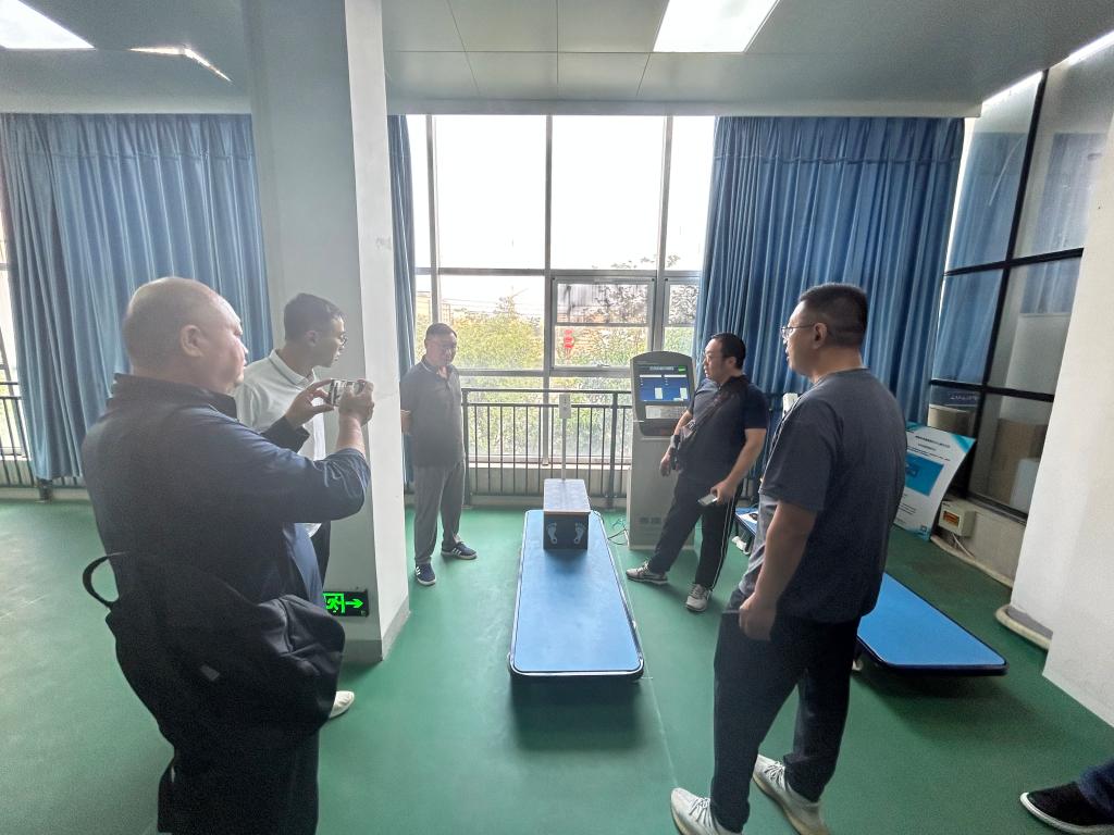 黄河水利职业技术学院体育部主任刘盎,副主任蔡寄平,体测负责人刘虎老师介绍了学生体测开展情况,体测等级证书发放流程,以及在体测工作中的宝贵经验。并带领参观了学校体测智能化设备。