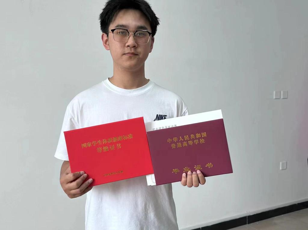图3、4 拿到毕业证与体质健康证书双证的学生留影