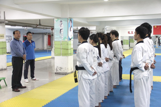 鼓励同学们要刻苦训练、不畏强手、努力拚搏、展示实力,树立良好的开大形象,并祝愿同学们在中国大学生跆拳道锦标赛上取得优异绩。