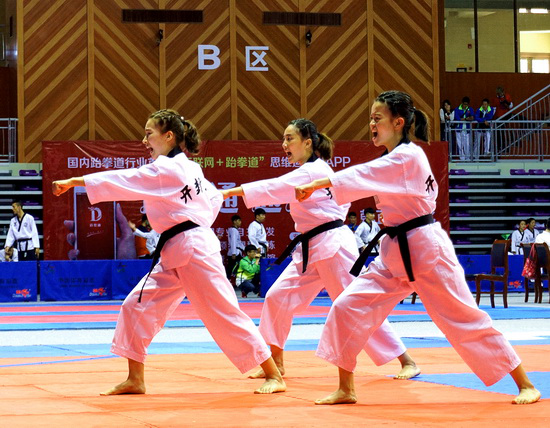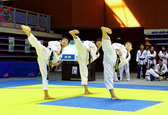 此次比赛中,来自全国117高校的1200多名大学生运动员参加比赛,我校参赛选手参加了丙组品势和竞技的比赛,经过激烈角逐,由我校电子电气工程学院郭世浩、何可仁和财政经济学院胡莹港组成的参赛队获得男团冠军,由我校艺术设计学院张晶瑞、外国语学院韩浩和医学部李新桥同学组成的参赛队获得女团冠军。此外,我校参赛队还分获男子各项比赛总分第一、女子各项比赛总分第一及混双、个人品势一个银牌和三个铜牌。