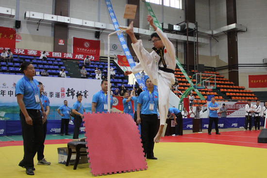 来自全国53所高校的500多名大学生运动员参加了此次比赛,我校参赛队参加了丙组品势、击破、跆拳舞的比赛。经过激烈角逐,由我校财政经济学院胡莹港、土木建筑工程学院孙建良、机械与汽车工程学院张昕同学组成的参赛队获得品势男团比赛冠军;由全体队员组成的参赛队获得跆拳舞比赛亚军;胡莹港和医学部聂萱同学获得品势混双季军;孙建良和张昕同学分获旋转击破和高度击破比赛季军;胡莹港、聂萱和旅游学院张舒羽同学均获男女个人品势比赛第五名;胡莹港、孙建良、张昕获得男子品势团体总分第一名;聂萱 、张舒羽和外国语学院潘思梦同学获得女子品势团体总分第四名。