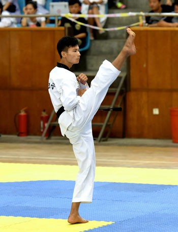 大赛共有来自全省百余所学校1354名运动员参加,比赛分本科组、专科组、中学组和小学组、幼儿组5个组别,所有组别均设品势和竞技两大类比赛。经过激烈的角逐,由我校土木建筑工程学院学生孙建良、财政经济学院学生胡莹港、机械与汽车工程学院学生张昕组成的参赛团获得男子品势团体冠军;由我校医学部学生聂萱、旅游学院学生张舒羽、外国语学院学生潘思梦同学组成的参赛团获得女子品势团体亚军;土木建筑工程学院学生孙建良获得男子个人品势冠军;医学部学生聂萱获得女子个人品势冠军;旅游学院学生张舒羽获得女子个人品势亚军;土木建筑工程学院学生李嘉龙获得段品组男子个人冠军;电子电气工程学院学生张鹏获得段品组男子个人亚军;医学部学生聂一帆获得女子段品组季军;人文学院学生邵启龙获得专科组男子68kg级冠军;机械与汽车工程学院学生刘登辉获得专科组男子87kg级冠军;人文学院学生何帅帅获得专科组男子87+kg级季军;我校郭成刚老师获“优秀教练员”称号。