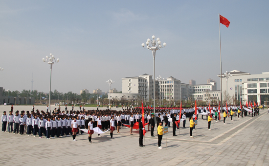 本站讯 春风送暖,万象更新。4月24日上午,我校第十三届体育文化节在东京大道校区隆重开幕。校领导张新梅、储建新、赵辉、范金梅、何世玲、李新春、耿广利、翟宝辰及全体师生参加了开幕式。开幕式由校团委副书记田俊松主持。