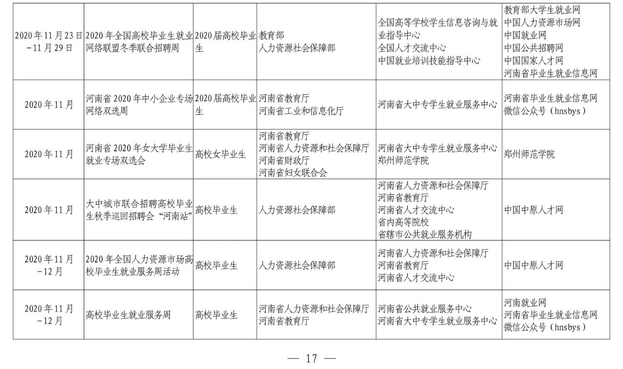 河南省教育厅等十部门关于联合开展河南省2020年高校毕业生