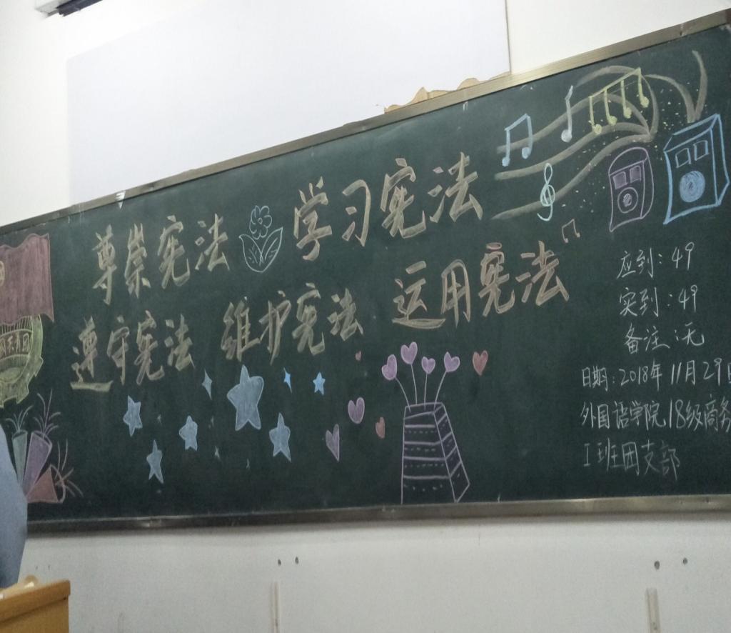本次系列活动为班级的主题的团会活动为载体,以推动宪法知识学习为主要目的,使同学们在学习宪法的过程中增强尊崇宪法、遵守宪法、维护宪法、运用宪法的意识。在团会开展过程中,充分发挥了、传统媒体和新媒体等平台优势,共享宪法相关知识材料与宣传信息,让同学们更全面、更透彻地学习了宪法知识。同时,为了营造浓厚的宪法教育氛围,提高师生学习宪法、尊重宪法、维护宪法尊严的意识,学院在大厅设立国家宪法日主题板报。在12月4日国家宪法日当天,学院组织同学们观看了宪法晨读网络直播。在观看直播过程中,同学们也跟随直播进入了宪法晨读环节,全体同学跟随北京主会场诵读宪法部分条款,在庄严的仪式感中感受宪法的精神和权威。此外,学院还组织学生参与到学生“宪法小卫士”活动中,学宪法、讲宪法,以实际行动投入到主题活动中,点燃宪法火炬、传递宪法精神。
