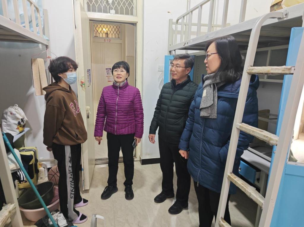3月3日下午,校党委委员、纪委书记石超亭同志与学院领导及辅导员一起深入外国语学院学生宿舍看望慰问返校同学。