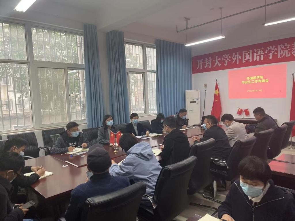 4月28日下午,外国语学院召开毕业生工作专题会,学院党政班子和2022届毕业生实习指导老师、辅导员参加,院长程欣主持会议。