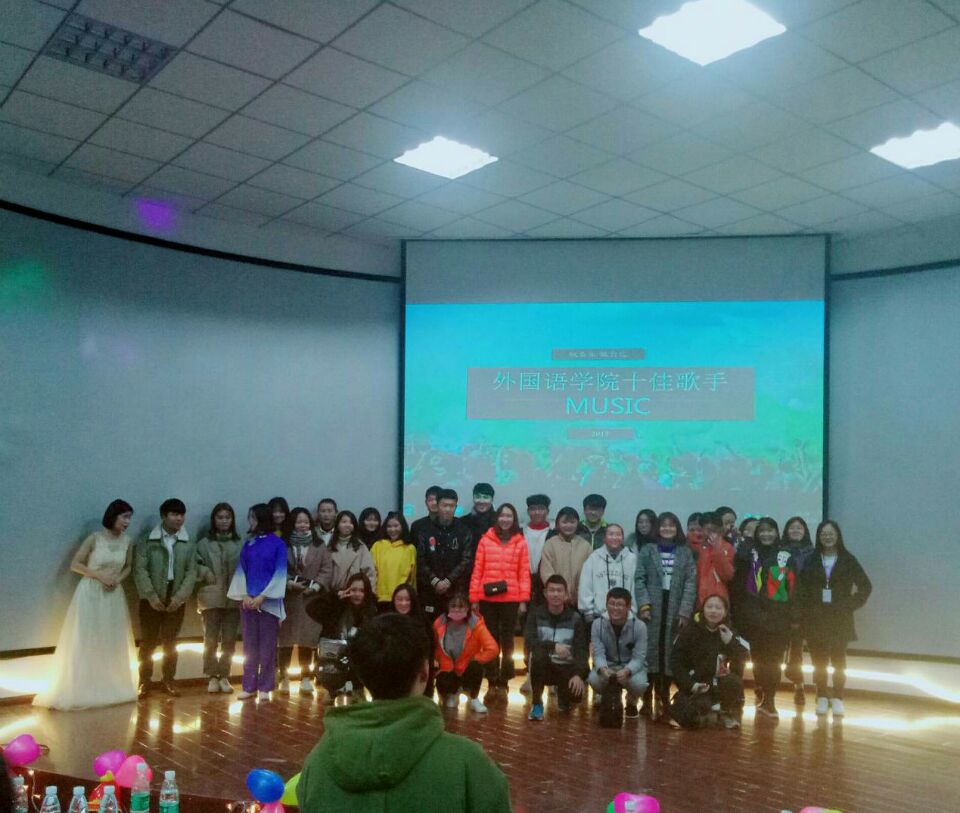 2017年11月19日晚7点,外国语学院十佳歌手决赛在国教学院一楼报告厅如期举行。出席此次活动的有团总支书记肖丽敏老师、15级学生会主席常青青、16级学生会主席李进、以及各院学生会主席和团总支副书记。