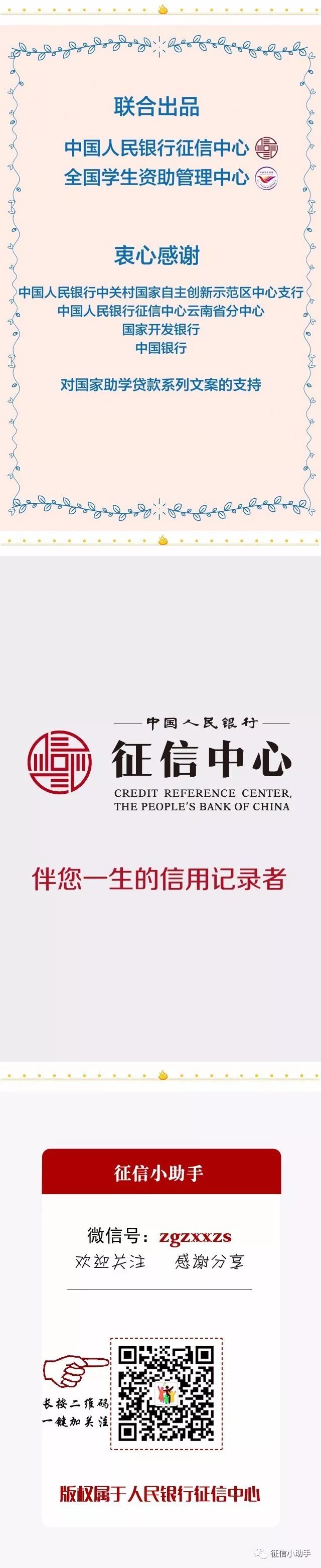 申请到“国家助学贷款”,您就给自己建立了“信用记录”!那么,您了解“国家助学贷款”与“信用记录”的关系吗?本期征信小助手就来告诉您。
