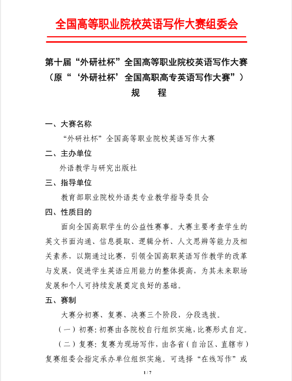 第十届“外研社杯”全国高等职业院校英语写作大赛规程
