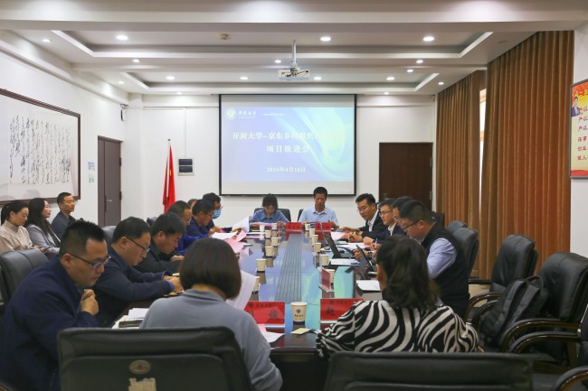 本站讯 4月16日下午,我校在行政楼第二会议室召开京东乡村振兴产业学院项目推进会,副校长李治,京东产业学院全国交付中心主任袁晨皓、项目经理李正阳、产业运营经理戚鹤亭、校园运营经理张智杰出席会议,学校相关职能部门及院部负责人参加会议。