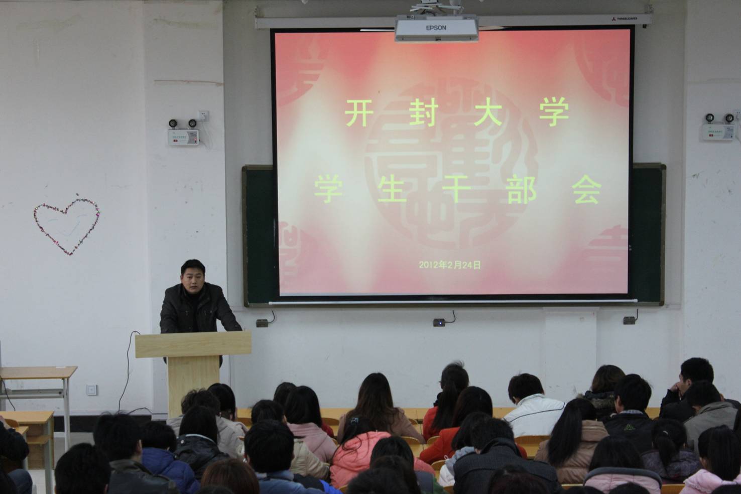 陈嘉慧书记,就新学期我校共青团的各项工作向大家做了布置。要求各级学生干部好加强政治敏感度,学会用理论知识来武装自己,用“四个新一代”的标准严格要求自己,为建设金石开封作出自己应有的贡献。
