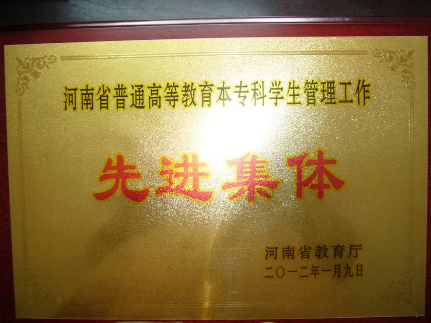 近日,省教育厅下发《河南省教育厅关于表彰河南省高等教育学生工作先进集体和先进工作者的决定》(教学[2012]13号),我校喜获“河南省普通高等教育本专科学生管理工作先进集体”、“ 河南省普通高等教育本专科学籍学历管理工作先进集体”两项荣誉,同时,学工部部长陈岩同志、招生就业处副处长刘红霞同志获得“河南省高等教育学生工作先进工作者”荣誉称号。