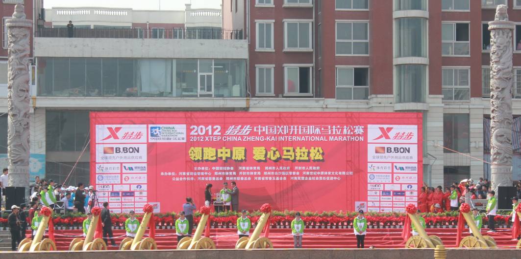 中国郑开国际马拉松赛由中国田径协会、河南省体育局、郑州市人民政府、开封市人民政府共同主办,目前是河南省唯一常设的大型国际体育赛事,也是目前中西部地区规模最大的全程马拉松赛事。赛事定于每年春天3月底四月初适时举行。从2007年首次举办以来,2012年迎来了6岁生日,从首届5600人参赛,到2012年第六届共有来自29个国家和地区的36000人参赛,今年还有1365个家庭报名参加了亲子马拉松项目,1126对情侣报名参加了情侣马拉松项目。今天,肯尼亚选手斯戈以以2小时12分39秒获得男子全程项目冠军。