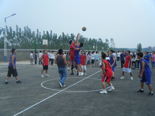 赛场上的篮球健儿本着奋进的体育精神,队员之间的团结互助,“友谊第一、比赛第二”的原则,在场上忘我的比赛着,努力着,以一个个漂亮的投球、防守、抢篮板的动作赢得两院拉拉队的热烈的欢呼声和掌声。