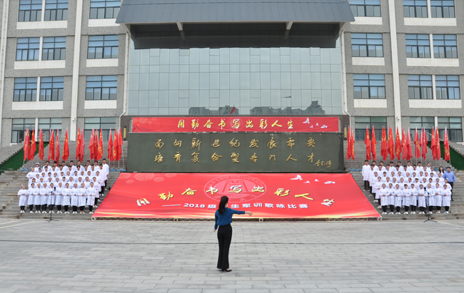 我校举行“用勤奋书写出彩人生”2018级新生军训歌咏比赛